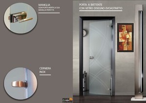 Porte interne battente con vetro temperato trasparente a disegno sabbiato anche personalizzato.